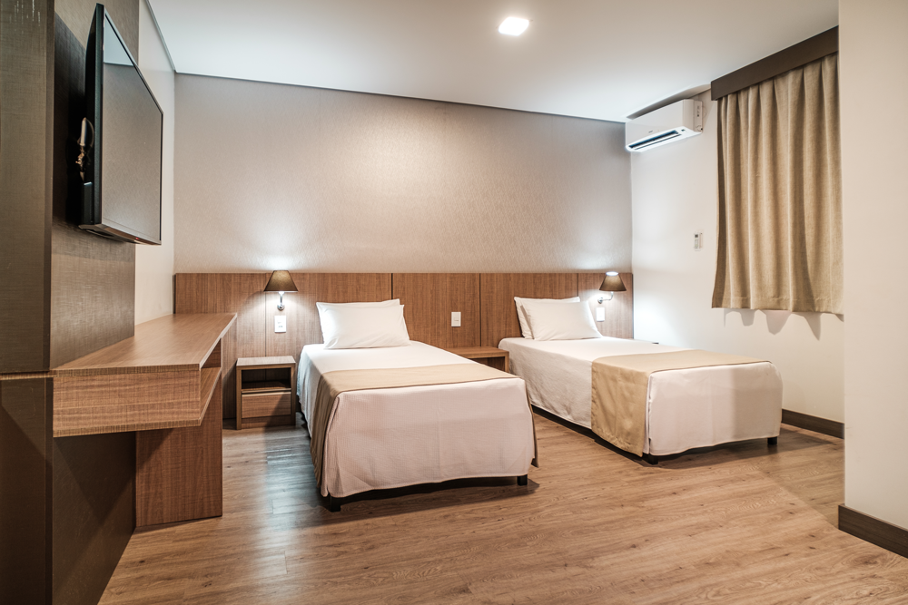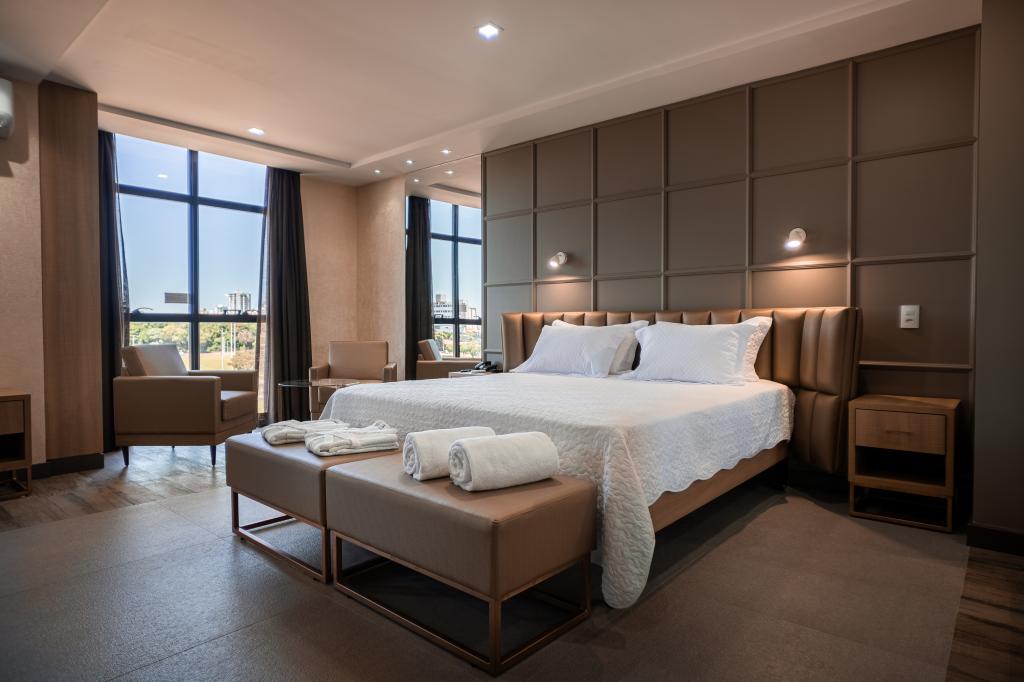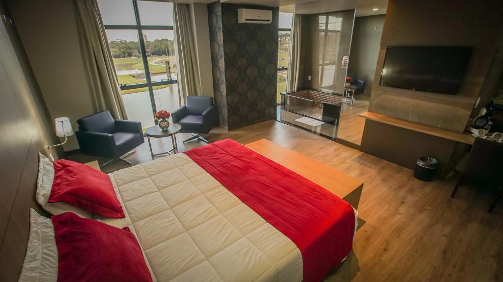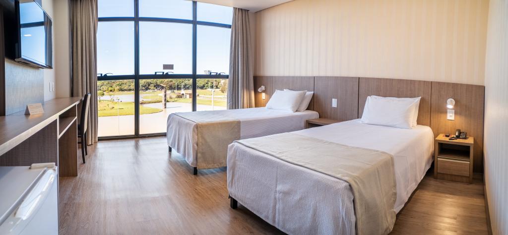 Para contemplar a mais bela vista de Toledo, esta categoria de apartamentos proporciona vista para o principal cartão postal da cidade: Parque Ecológico Diva Pain Barth. Sua estrutura conta com camas de solteiro ou de casal, banheiro com ducha aquecida a gás e hidromassagem vertical, roupeiro com cabides, frigobar, ar condicionado, TV a cabo e acesso wireless a internet.