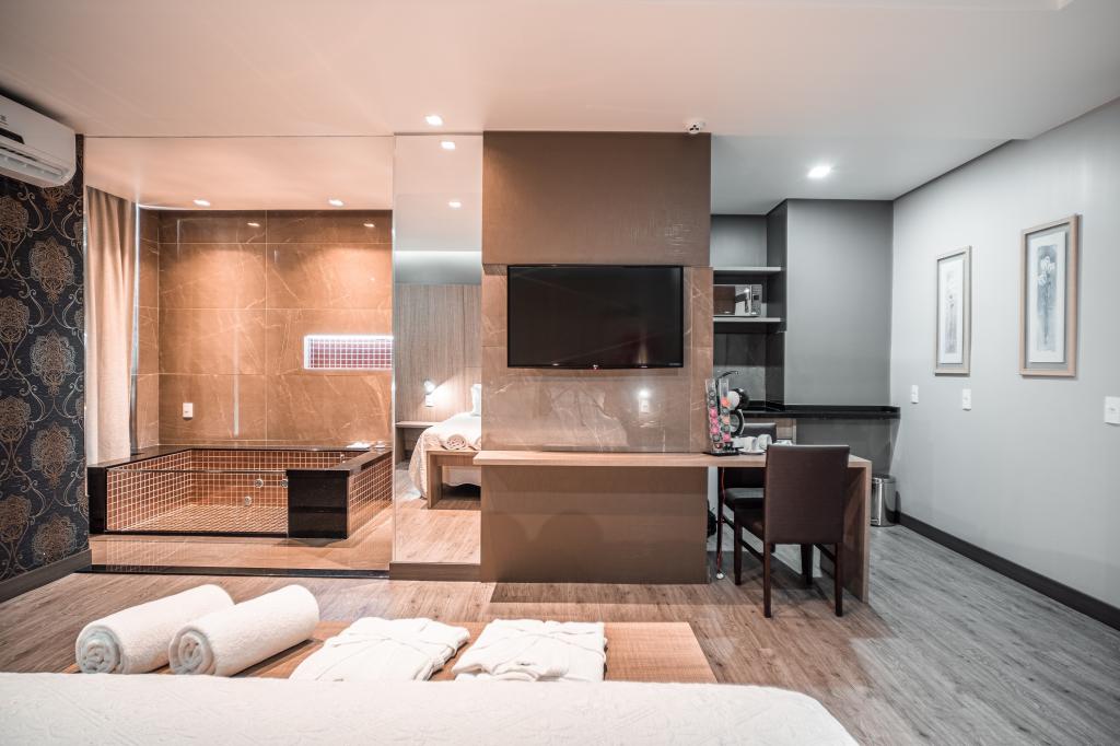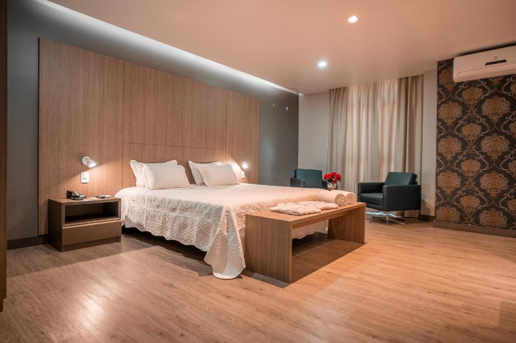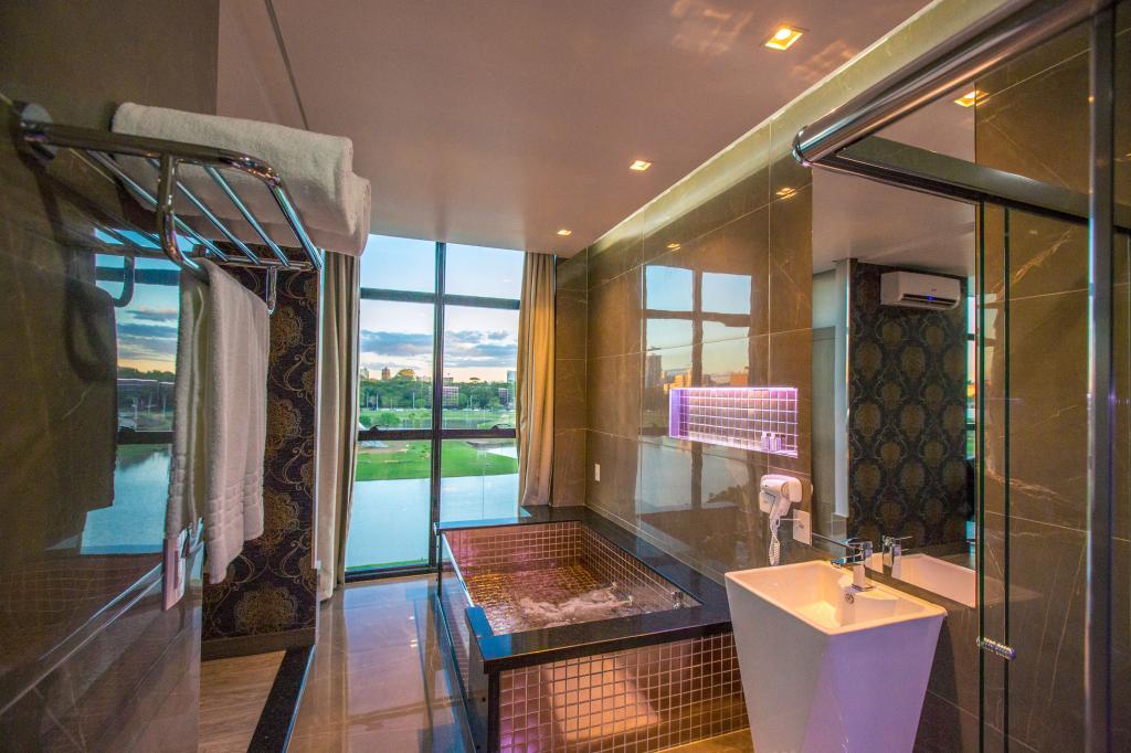 Para quem busca sofisticação esta é a categoria indicada. Apartamento amplo com cama de casal, banheira de hidromassagem, mini cozinha, TV a cabo de 50 polegadas, vista para o parque ecológico, roupeiro com cabides, frigobar, ar condicionado e acesso wireless a internet.